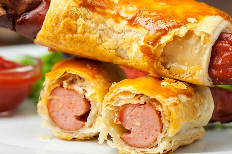 Пирог из слоеного теста с сосисками и сыром
