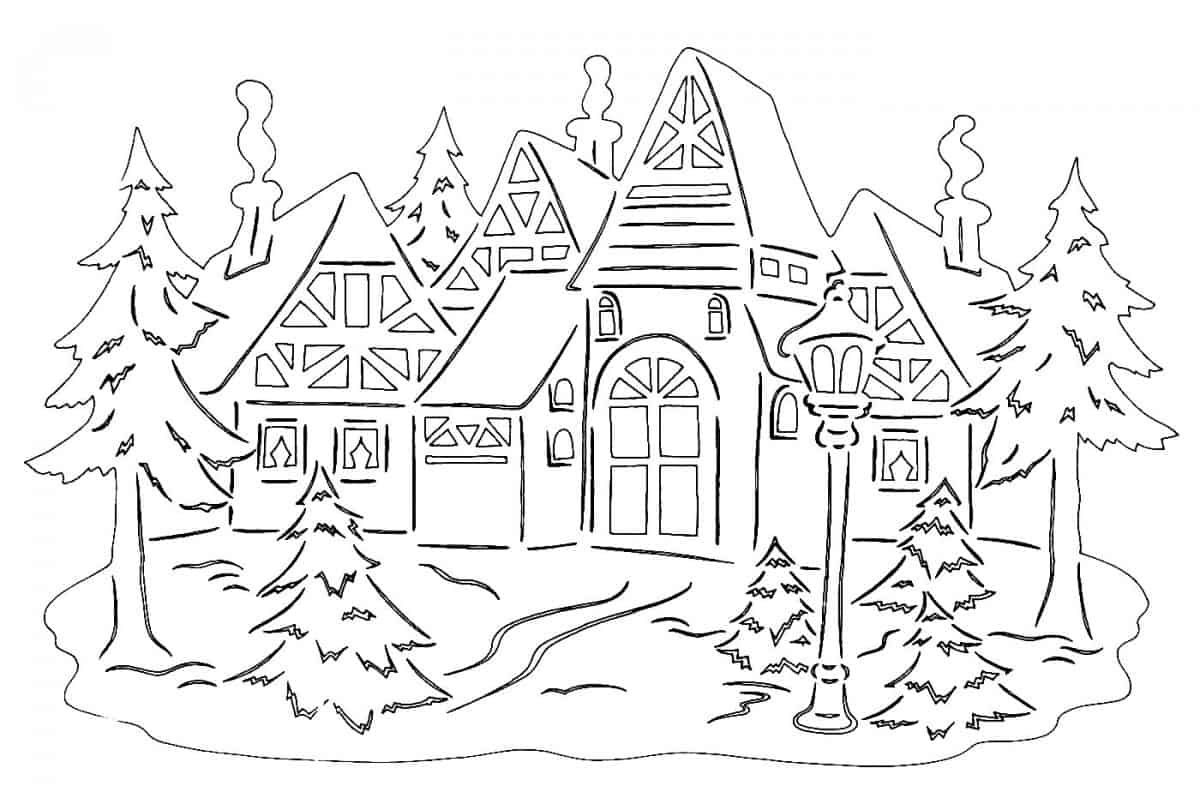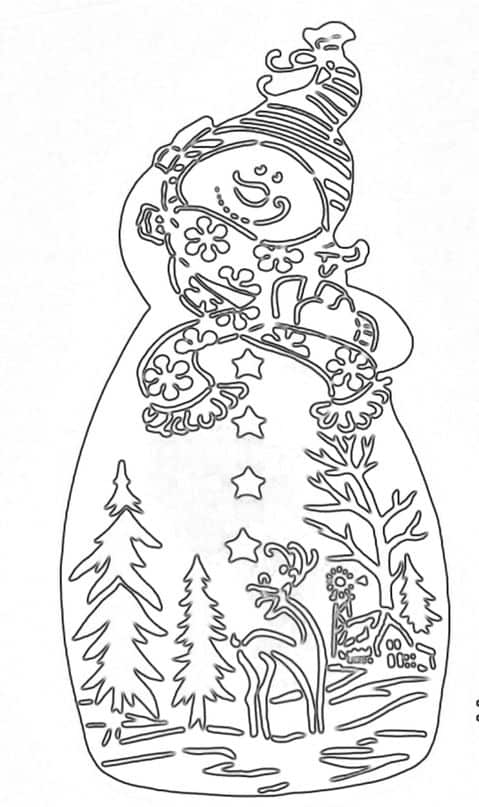 Трафарет на Новый год — снежинки, снеговики, домики для декора комнаты и окон