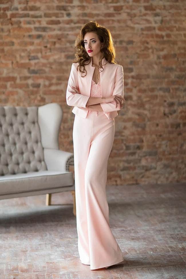 Бизнес леди могут не отходить от своего привычного образа надев оригинальный брючный костюм из струящегося материала.