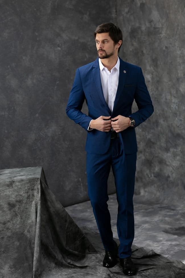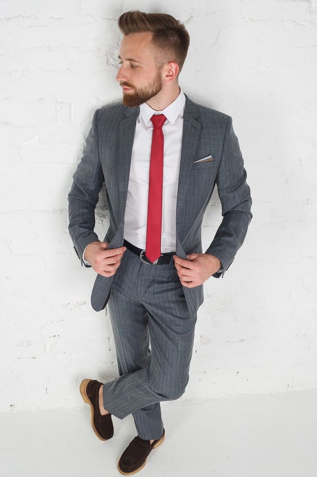 Мужчины могут проще отнестись к выбору наряда. Символу года понравится спокойные тона и классический крой. Беспроигрышный вариант для встречи Нового года – брючный костюм классического пошива.