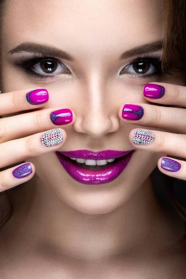 Нельзя допускать, чтобы блеск выглядел слишком аляповатым. Визажисты советуют соблюдать монохромность образа, когда все элементы макияжа и маникюра соблюдены в одной гамме.