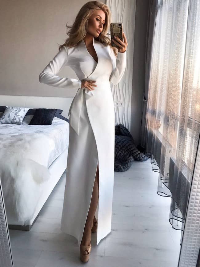 Такой образ идеально подойдёт как для встречи Нового года в кругу близких людей, так и для корпоративного вечера в ресторане.